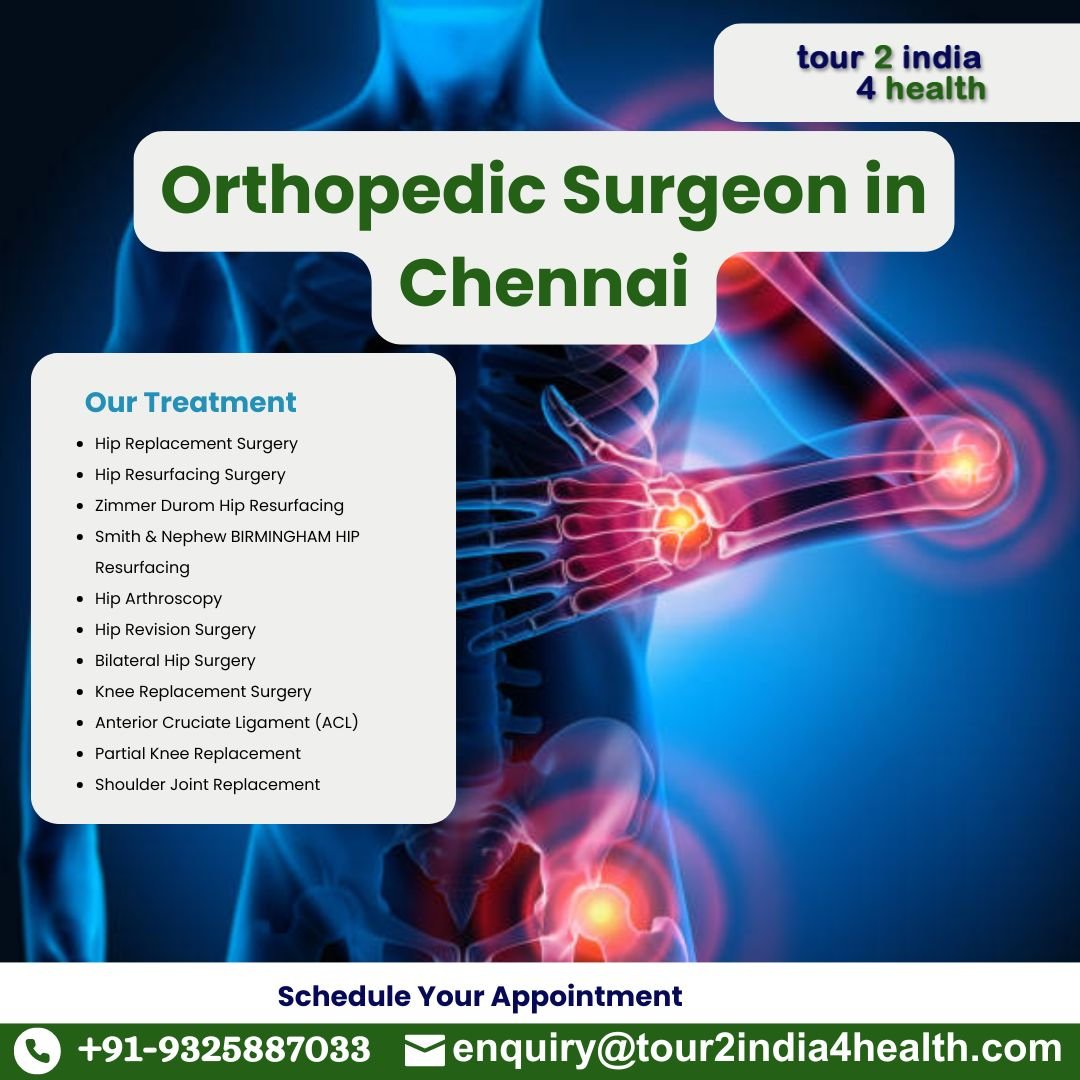 Orthopedic surgery encompasses medical interventions targeting the musculoskeletal system to treat injuries and various conditions. Currently, best orthopedic surgeons in Chennai employ robotic-assisted technology to improve precision and accuracy in surgical procedures. Many of the best orthopedic surgeons in Chennai provide access to the latest advancements in medical technology for the benefit of their patients. Best hospital for orthopedic surgery Chennai presents numerous significant advantages. These facilities are equipped with cutting-edge medical technology and comply with international hygiene standards. Tour2india4health consultant is recognized as a key provider of medical services in India, committed to assisting patients and their families throughout their healthcare experiences.