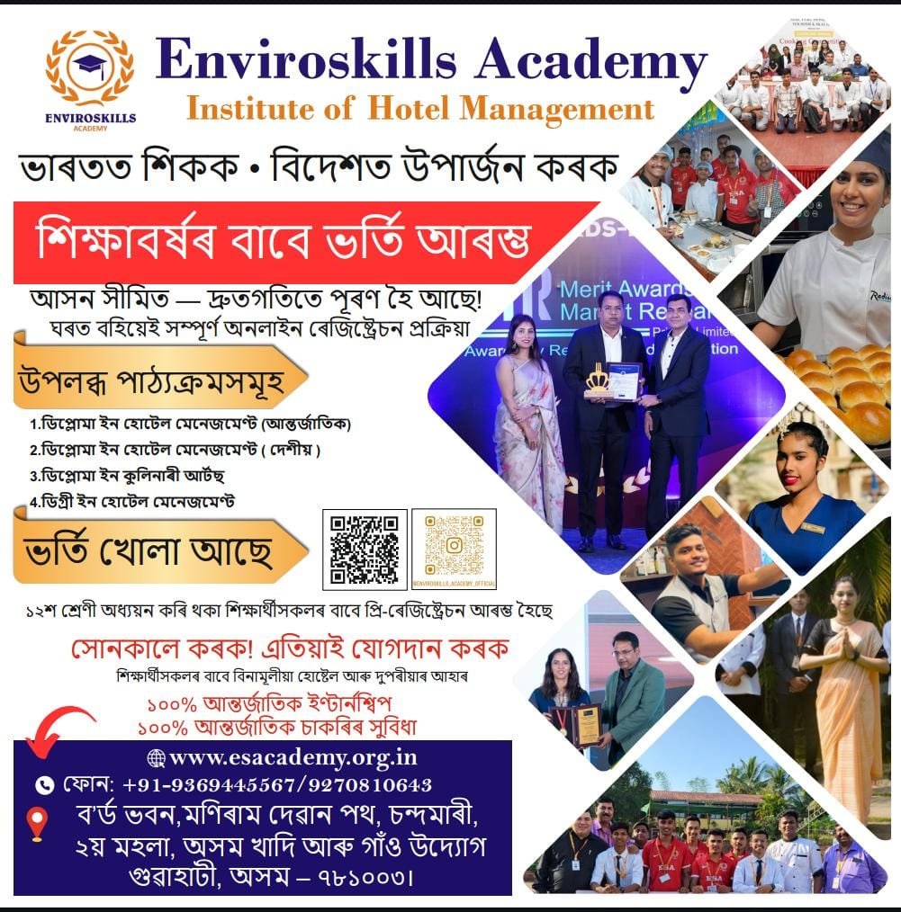 If you are looking for the best hotel management college in Guwahati, Enviroskills Academy is one of the top choices for students who want to build a successful career in the hospitality industry. The academy offers industry-focused hotel management courses, professional chef training, hospitality management programs, and practical learning opportunities designed to prepare students for real-world hotel operations.