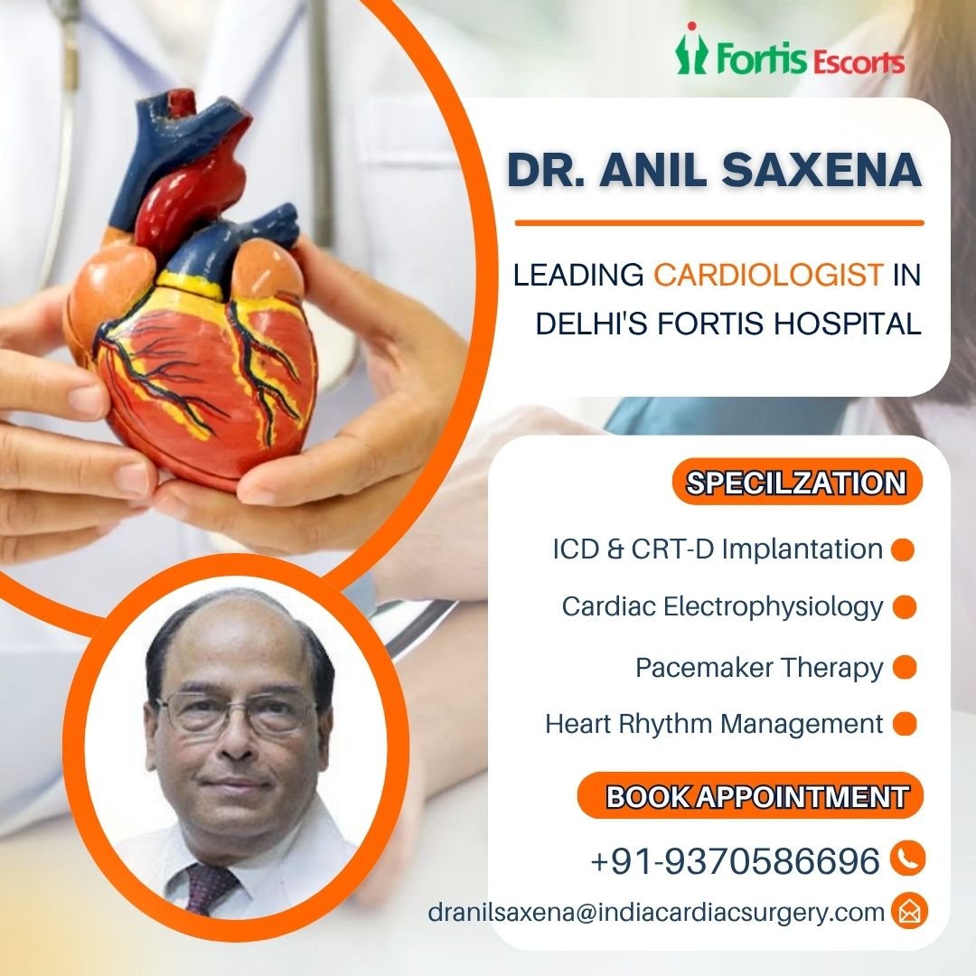 Dr. Anil Saxena Best Cardiologist in Delhi is widely recognized for his expertise in advanced cardiac care and electrophysiology. With years of experience, he specializes in managing complex heart rhythm disorders using cutting-edge technologies. Best ICD CRTD Pacemaker Cardiologist Fortis Delhi, Dr. Saxena is known for performing successful ICD and CRT-D implantations with high precision and patient safety. His patient-centric approach, accurate diagnosis, and commitment to excellence make him a trusted name in cardiology. He practices at Fortis Hospital Delhi, offering world-class treatment, personalized care plans, and excellent outcomes for patients with serious heart conditions.